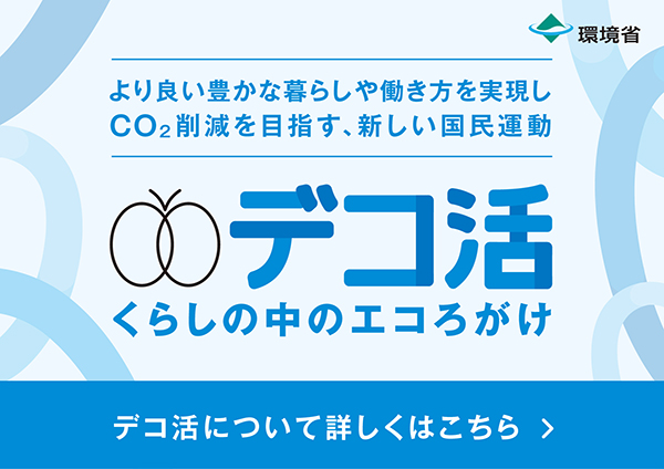 環境省が推進する「脱炭素につながる新しい豊かな暮らしを創る国民運動」の愛称で、二酸化炭素(CO₂)を減らす(DE)脱炭素(Decarbonization)と、環境に良いエコ(Eco)を含む"デコ"と活動・生活を組み合わせた新しい言葉です。