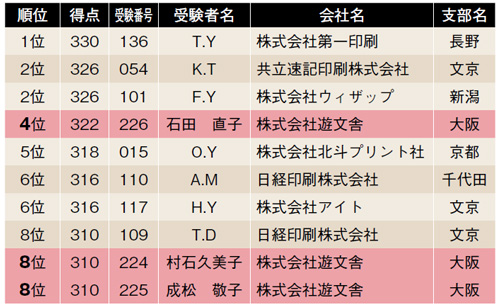 遊文舎の3名全員がベスト10に