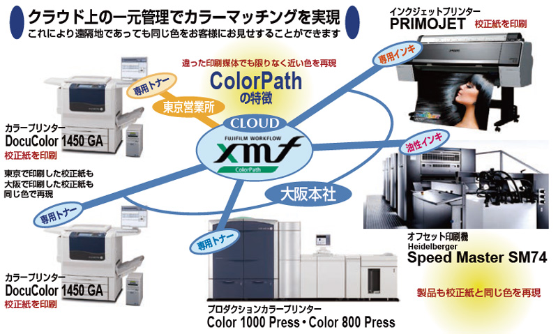 すなわち、初校から最終仕上がりのイメージを確認できるということで、校正の回数を減らせるかもしれません。また色修正の結果を確認する際にも、本機校正などのやり取りが減り、納期短縮・価格圧縮につながるでしょう。ColorPath によるカラーマネジメントシステムの強化により、品質保証・効率化・短納期化に多いに寄与できるものと確信します。