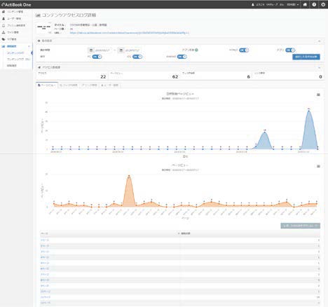 「ActiBook One」の一番の特長として挙げられるのが、このログ管理です。デジタルブックのどのページがどれだけ見られているのか、どのような導線からコンテンツに辿り着いたのか、ブック内検索ワードの順位、リンク参照数など様々なログを取ることが可能です。それらを分析し、次回コンテンツ作成時にご提案させていただきます。