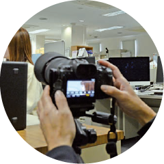 撮影のためにすべてを片付けてしまうと、きれいではあっても、どこか「らしさ」が抜けてしまいます。そこで今回は、多少雑多な状況もそのままにしながらも、背景がうるさくなりすぎない角度を選び、社員の表情や手元の動きに自然と目が行くような構図を意識しました。PC 作業に向き合う姿や紙や冊子に手を添える仕草など、各部署で淡々と仕事を進める日常の一場面がテンポよく映し出された動画になっています。撮影当日は、各部署のみなさんに「いつも通りで大丈夫です」と声をかけながら社内を回りました。